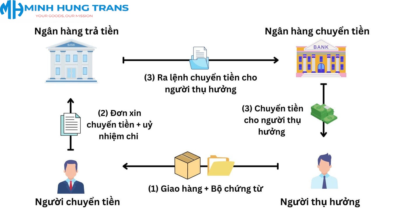 Phương thức chuyển tiền là hình thức thanh toán trong đó người mua hoặc người nhập khẩu yêu cầu ngân hàng của mình chuyển một số tiền nhất định cho người bán hoặc người xuất khẩu. Quá trình này thường được thực hiện thông qua mạng lưới đại lý ngân hàng quốc tế, đảm bảo tiền được chuyển đến đúng địa chỉ và thời gian quy định.